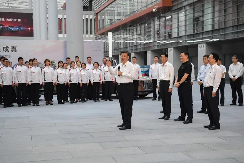 企业展厅里,习近平察看了最新款式的整车产品,了解集团创新驱动、体制机制创新、产业结构优化升级情况,并同职工代表简短交流。他强调,推动我国汽车制造业高质量发展,必须加强关键核心技术和关键零部件的自主研发,实现技术自立自强,做强做大民族品牌。当今世界制造业竞争激烈,要抢抓机遇,大力发展战略性新兴产业,实现弯道超车。希望大家发愤图强、不负韶华,在推动东北振兴中奉献聪明才智,在实现中华民族伟大复兴中国梦的进程中书写壮丽的青春华章。