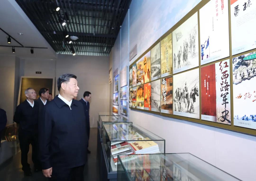 2019年5月20日至22日,中共中央总书记、国家主席、中央军委主席习近平在江西考察,主持召开推动中部地区崛起工作座谈会并发表重要讲话。这是习近平在赣州市于都县中央红军长征出发纪念馆参观,缅怀当年党中央和中央红军在苏区浴血奋战的峥嵘岁月。新华社记者 谢环驰/摄